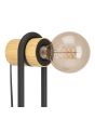 Die extravagante Tischleuchte Flinn bereichert Wohn- und Schlafräume und eignet sich sowohl als Beleuchtungslösung für dunkle Ecken als auch als Dekoelement. Die Neuinterpretation des ältesten Werkstoffs Holz schafft eine wohnliche Atmosphäre durch natürliches Design. Das Holz stammt aus nachhaltiger Forstwirtschaft und ist FSC-zertifiziert. Dieses Siegel des Forest Stewardship Council bedeutet, dass das eingesetzte Holz dieser Leuchte ausschließlich aus verantwortungsvoll bewirtschafteten Wäldern stammt. Der Ursprung des Materials ist vom Wald bis zur Lieferung nachverfolgbar. Der auszuleuchtende Bereich kann durch den Kopf flexibel eingestellt werden. Die Leuchte ist ausgelegt für den Einsatz von Normallampen. Leuchtmittel sind im Lieferumfang nicht enthalten. Der Einsatz von LED-Leuchtmitteln ist aber möglich. Das warmweiße Licht wird als gemütlich und behaglich empfunden. Es sorgt für eine angenehme Atmosphäre. Bequem eingeschaltet werden kann die Tischleuchte mit dem Kippschalter. Das Kabel ist circa 1,8 Meter lang.